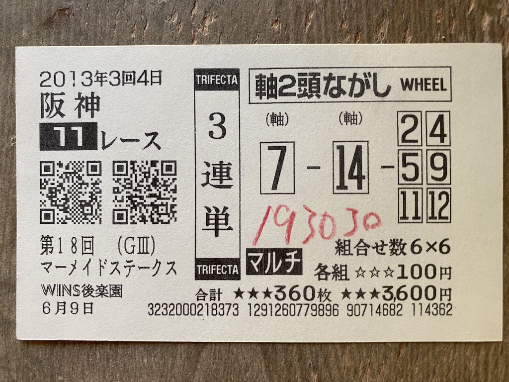 上記4枚の当たり馬券の写真は、僕がオッズだけにフォーカスして勝負できると確信を持てた年に的中したレースの一部です。(少し古いレースですがお許しください。)